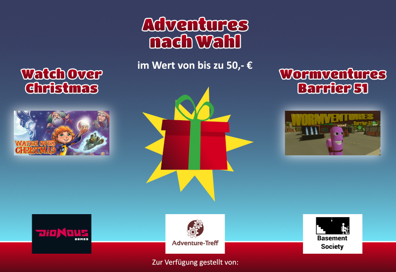 Alle Teilnehmer, die im Laufe des Kalenders mindestens 20 Rätselfragen richtig beantworten konnten, können sich Hoffnungen auf unsere Hauptgewinne machen: Adventures nach Wahl im Wert von bis zu 50,- € sowie je einmal Watch Over Christmas und Wormventures – Barrier 51.